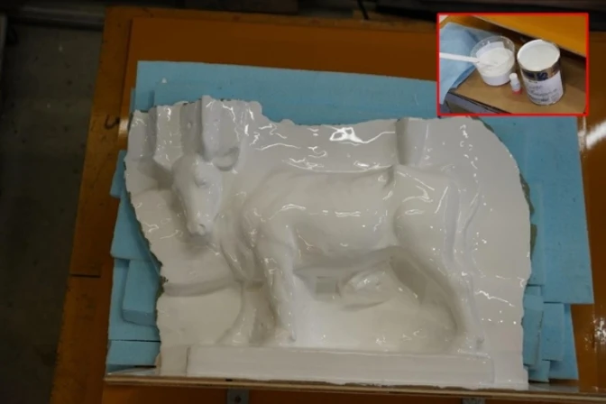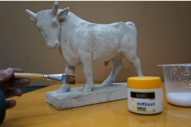 | 5 | 牛の石コウ外型に石ケン水を塗ったり針金で四つ足の補強工作をしたりでこの牛は中々手間がかかる。 | |