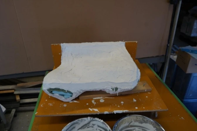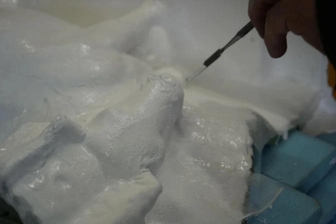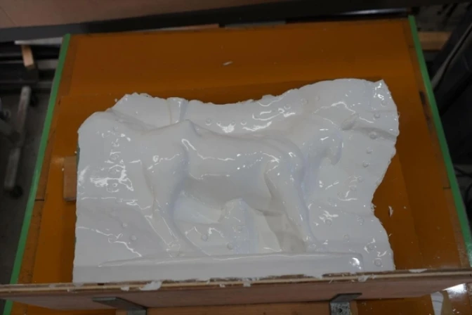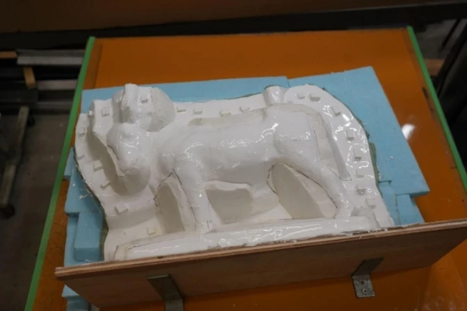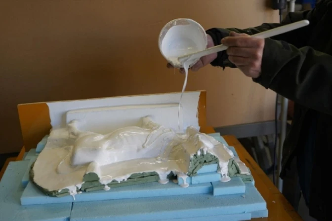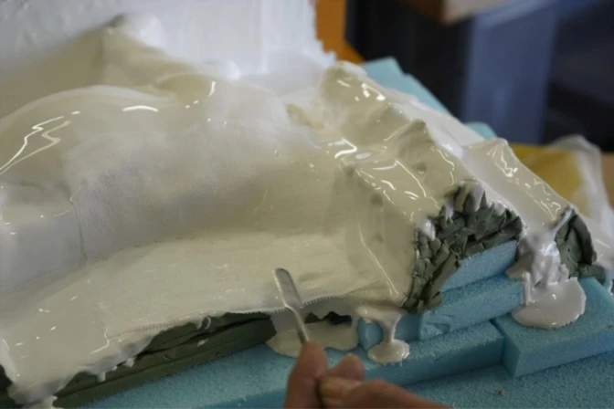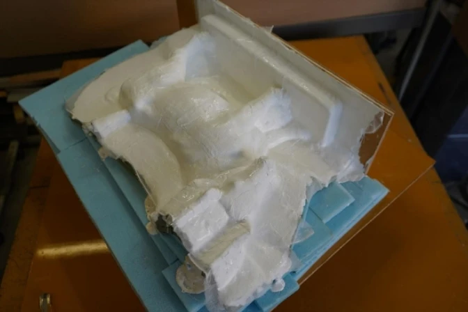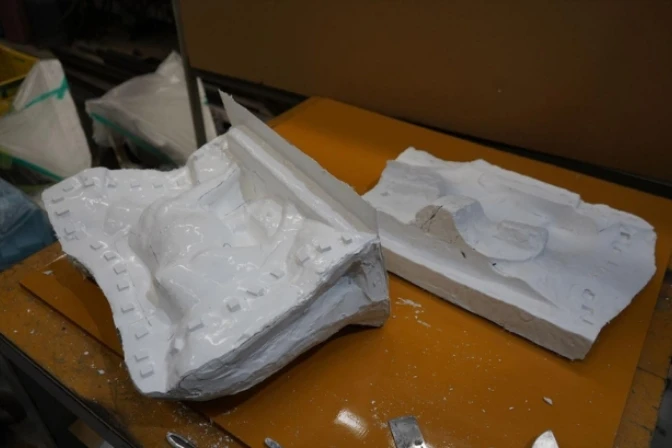ワックスモデル(ワックス原型)を作るために、まず石膏モデル(石膏原型)からシリコン型(シリコンモールド)を制作します。