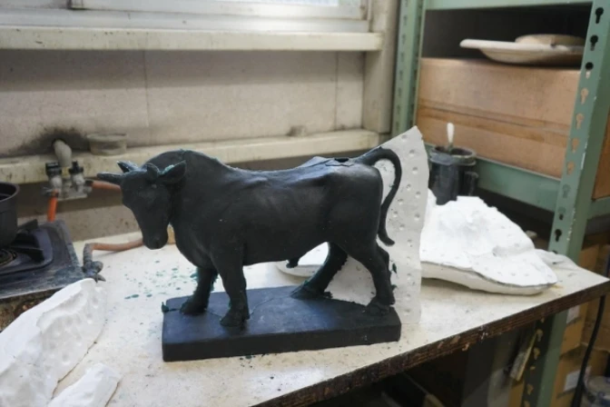 この度、本サイトにブロンズ鋳造の工程を解説するコンテンツを掲載したいと黒川先生(およびブロンズスタジオのみなさま)にご相談したところ、ちょうどとある作品を石膏像からブロンズにしたいというご要望をお持ちの方がいらっしゃるとのことで、今回《牡牛》の鋳造過程を動画にさせていただくこととなりました。