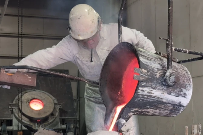 鋳込み作業(鋳型にブロンズを流し込むこと)を行います。